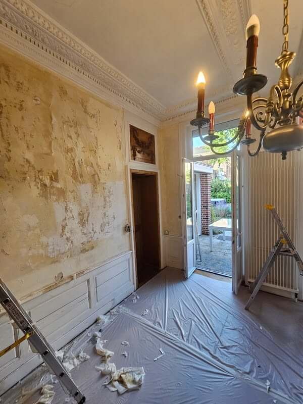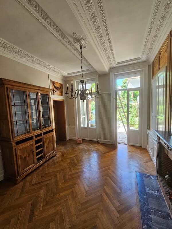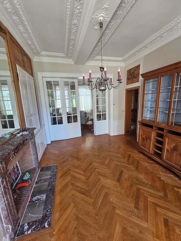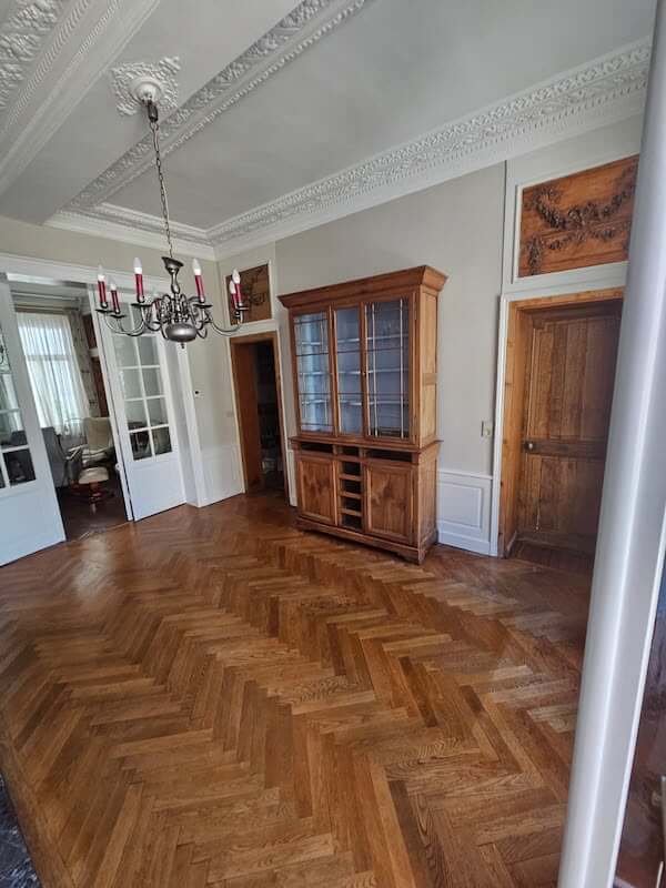 Rénovation complète des murs, plafonds et boiseries, accompagnée de la pose d’un parquet flottant. Projet réalisé avec soin en Belgique.